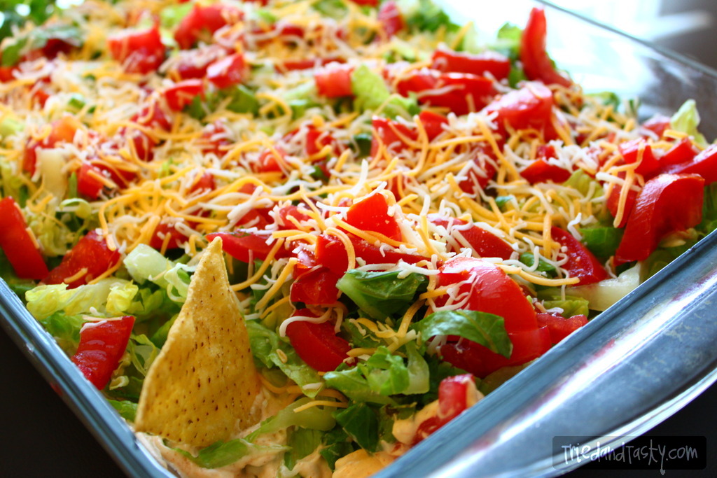 One of my past time’s is to cooking blog hop, in doing so I came across a fun little site where I found this little dazzler for Taco Dip. This dip was super fast to make, didn’t require a ton of ingredients and was a hit at the bbq this afternoon :) I will for sure be making this time and time again – it’s a bit simpler than your usual 7 layer dip, and isn’t nearly as expensive!